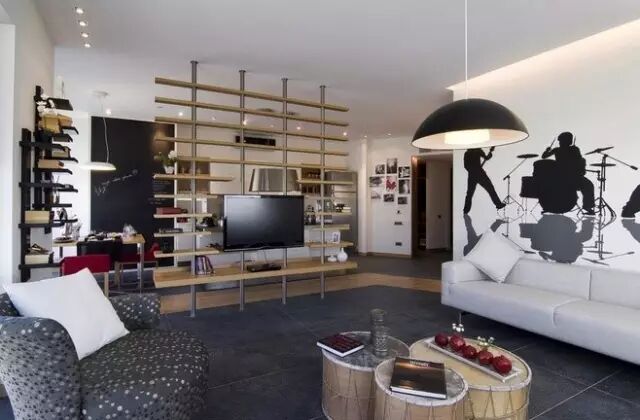 建议:亮色最好为适当点缀,还应配合用暗色的地板和家具进行过渡。